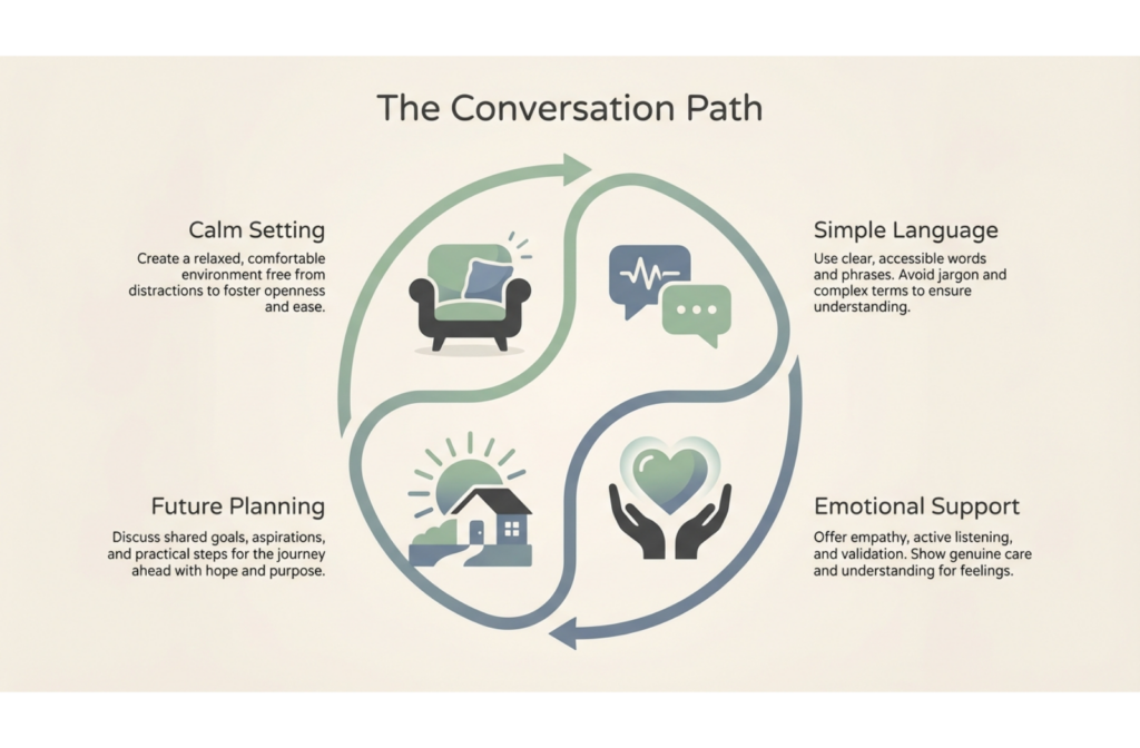 More than anything, your loved one needs to know they’re not alone. Remind them of your love and commitment. Frame the conversation around how you will face this journey together, focusing on partnership and positive coping strategies.